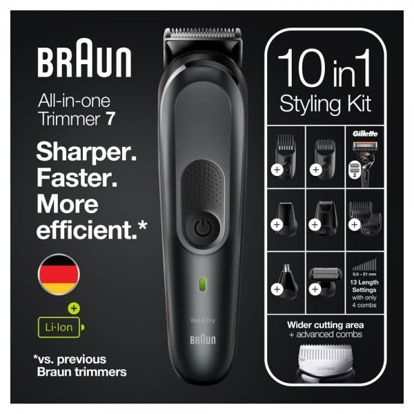 دستگاه 10 در 1: دستگاه اصلاح ریش مردانه Braun MGK7331 و کیت اصلاح بدن هر طول مو را کوتاه می کند. از ریش، صورت و گوش گرفته تا اصلاح بینی، اصلاح بدن و آرایش صورت.