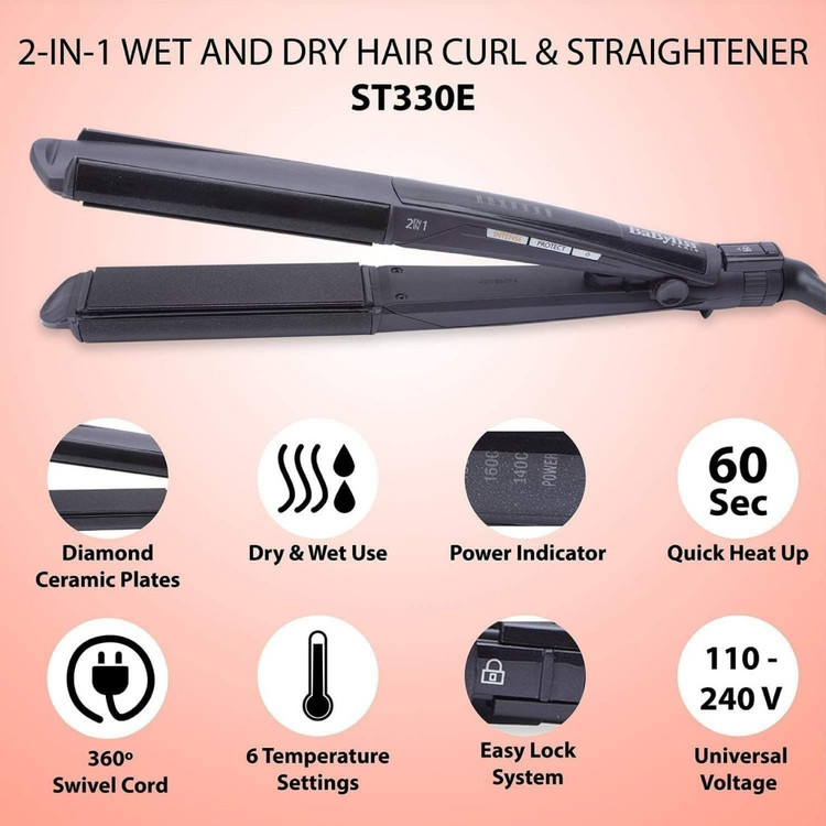 صاف کردن موها زمانیکه خشک هستند یا زمانیکه تازه شسته شدهاند و هنوز مرطوب هستند مورد نیاز بسیاری افراد است؛ بهخصوص زمانیکه میخواهند به مهمانی بروند وعجله دارند. اتو موی ST330ALE که توسط شرکت «بابیلیس» (Babyliss) تولید شده است این امکان را فراهم میکند. این محصول را میتوان در 6 درجه حرارت مختلف از 140 تا 235 درجهی سانتیگراد تنظیم کرد. همین گستره دمای زیاد است که صاف کردن موها را در 2 حالت خشک و مرطوب امکانپذیر میکند. این کالا با بیشینه دمای 235 درجه سانتیگراد موجب صاف کردن سریع موها میشود. این اتو مو دارای سیستم خاموش شدن خودکار است. ویژگیای که نهتنها طول عمر آن را افزایش میدهد بلکه به ایمنی استفاده کردن از دستگاه میافزاید. جنس صفحات اتو مو معمولا از استیل یا سرامیک است. اما باید گفت صفحههای سرامیکی ST330ALE برای سلامتی مو مناسبتر هستند زیرا الکتریسیته را انتقال نمیدهند و در برابر گرما مقاومت دارند، بنابراین میزان انتقال الکتریسیته به مو و ایجاد خطر به هنگام استفاده از اتو مو کاهش مییابد. کفههای سرامیکی به دلیل مقاومت در برابر حرارات، دیرتر فرسوده میشوند و بر همین اساس، عمر بالاتری دارند. همچنین حرارتی که در زیر کفههای سرامیکی ایجاد میشود، به خوبی در سطح سرامیک پخش شده و آن را داغ میکند. همین عامل باعث میشود تا حرارت به طور یکسان در حین اتو کشیدن به تمام موها منتقل شود. اتوهای مو در سه سایز مختلف ساخته شدهاند؛ اتوهای کفه پهن، کفه باریک و کفه متوسط. ST330ALE از نوع کفه متوسط است. این وسیلهی آرایش مو با کفههای متوسط برای افرادی مناسب است، که دارای موهای کوتاه هستند یا میخواهند موهای خود را حالت بدهند. سریهای این اتو مو طوری طراحی شدهاند که با استفاده از آن میتوان موها را صاف کرد و حالت داد. بخش تخت سری برای صاف کردن موها و بخشهای خمیدهی کناری برای حالت دادن موها بهکار میروند. همچنین سیستم ایمنی قفل دما همانطور که ازنامش مشخص است از افزایش بیش از حد دما جلوگیری کرده و به ایمنی استفاده از دستگاه میافزاید. اتو موی ST330ALE دارای صفحات متوسط و از جنس سرامیک، بیشینه دمای 235 درجهی سانتیگراد، سیستم خاموشی خودکار، سیستم ایمنی قفل دما، قابلیت تنظیم در 6 درجه حرارت و 2 قابلیت صاف و خشک کردن است.