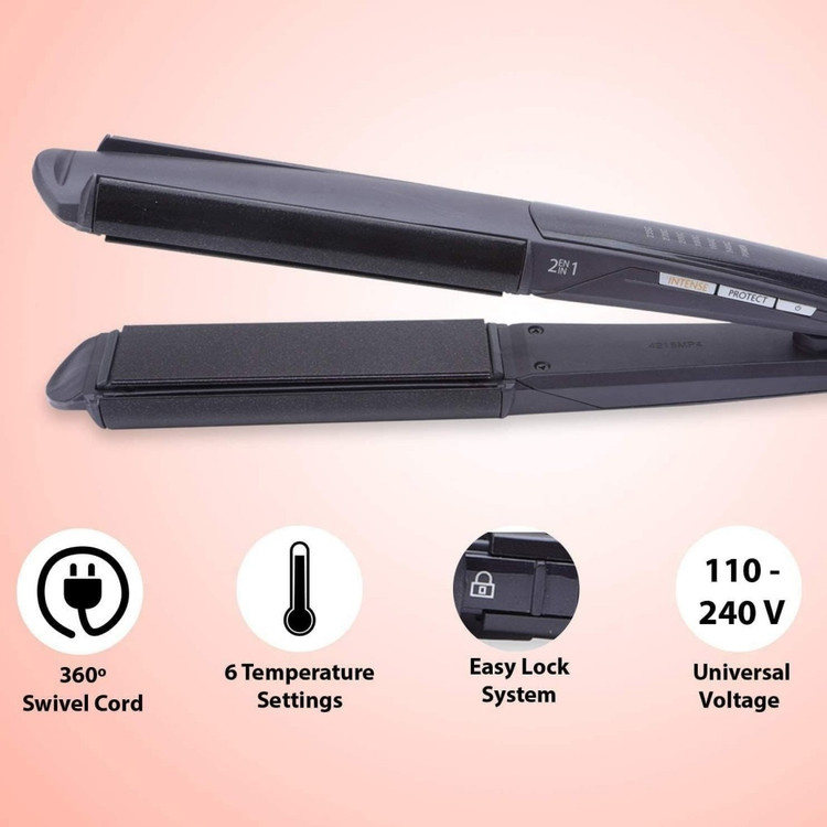 دارای ۲ قابلیت حالتدادن و صاف کردن موها - مورد استفاده برای موهای خشک و مرطوب - قابلیت تنظیم دما در ۶ درجه حرارت: ۱۴۰، ۱۶۰، ۱۸۰، ۲۲۰، ۲۳۰ و ۲۳۵ سانتیگراد - دارای صفحات با روکش تیتانیوم
