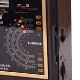 رادیو اسپیکر ها ابزار های دوست داشتنی جهت گوش دادن به موسیقی و رادیو می باشند. شرکت گولون یکی از شرکت های تولید کننده محصولات صوتی می باشد، که رادیو اسپیکر مدل RX-9922UAR را با مشخصات فنی مناسب و طراحی کلاسیک معرفی و عرضه کرده است. طراحی این محصول توسط شرکت گولون احساس نوستالژی خاصی را به شما منتقل می کند. در قسمت جلویی این محصول شاهد قرارگیری درایو اسپیکر در نیمه چپ و یک نمایش دهنده فرکانس آنالوگ در نیمه راست هستیم، روی این نمایشگر آنالوگ که جستجوی دستی کانال ها و فرکانس های رادیویی را در سه موج رادیویی FM/AM/SW نشان می دهد، یک پورت USB جهت اتصال فلش مموری و رم ریدر و یک درگاه کارت حافظه رم SD جهت پخش فایل های صوتی MP3/WAV/WMA تعبیه شده است. در قسمت راست و کناری این دستگاه پورت AUX جهت اتصال هندزفری و هدفون، کلید عقربه ای کنترل امواج یا Tuning، کلید تغییر حالت پخش و ولوم کنترل صدا دیده می شود. همچنین یک درگاه برق AC تعبیه شده تا با اتصال کابل برق، انرژی مورد نیاز اسپیکر تامین و باتری داخلی آن شارژ شود. به وسیله باتری داخلی شما قادر به پخش موسیقی و رادیو حتی در شرایط قطعی برق خواهید بود، علاوه بر این شما می توانید ۲ باتری قلمی را نیز پشت اسپیکر متصل کنید. متاسفانه رادیو اسپیکر گولون قابلیت اتصال بی سیم (بلوتوثی) به گجت ها را ندارد که با توجه به کاربرد این محصول نقطه ضعف چندان بزرگی به شمار نمی آید. اما از نقاط قوت اسپیکر رادیویی RX-9922UAR می توان به آنتن تلسکوپی ۳۶۰ درجه قابل تنظیم آن اشاره نمود، که وظیفه دریافت سیگنال های رادیویی با بالاترین کیفیت را بر عهده دارد.