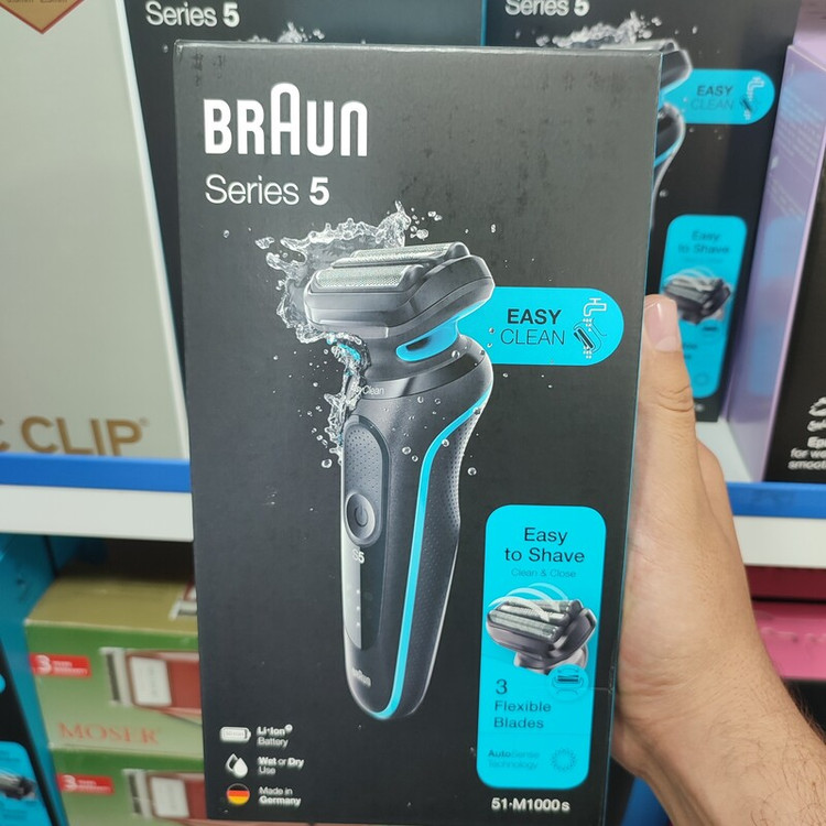 ریش تراش براون مدل 51M1000s با 3 عدد تیغه انعطاف پذیر به طور روان با خطوط صورت شما سازگار است. بیشترین سازگاری را با ریش شما پیدا می کند. در حالی که سیستم EasyClean تمیز کردن سریع و ساده را امکان پذیر می کند- بدون نیاز به برداشتن سر ماشین اصلاح. کارآمد حتی برای ریش های سخت. ریش تراش براون مدل 51M1000s با تکنولوژی AutoSense تراکم ریش شما را اندازه گیری می کند و قدرت را با تراکم ریش شما تطبیق می دهد، و در هر اصلاح موهای بیشتری را می گیرد و کوتاه می کند. فناوری AutoSense اسکن می کند و با تراکم ریش شما سازگار می شود. به راحتی با فرم صورت و تراکم ریش شما می تواند سازگاری پیدا کند. این قابلیت باعث می شود که حساسیت در ناحیه زیر گردن ایجاد نشود و حساسیت را به مرور از بین می برد. همچنین قدرت بی نظیر 24 هزار برش در دقیقه کارایی عالی را به شما ارائه می کند. سرعت بیشتر اصلاح در مقایسه با مدل های قبل تر براون. سرعت بیشتر اصلاح همراه با نهایت دقت یعنی زمان کمتر اصلاح، زمان کمتر یعنی جلوگیری از ایجاد حساسیت، کاهش حساسیت یعنی اصلاح ملایم و ایده آل می باشد. ریش تراش خود را بدون برداشتن سری آن تمیز کنید. راحت ترین روش تمیز کردن و شستشوی ریش تراش در سری 5 براون. کافی ست دستگاه را زیر جریان شیر آب قرار دهید تا آب از طریق عناصر برش در زیر سری اصلاح، جریان پیدا کند و توری ها و تیغه ها را شستشو دهد. این روش شستشوی آسان این امکان را به شما می دهد که هر بار بعد از اصلاح، سری ریش تراش سری 5 براون را به راحتی شستشو دهید.