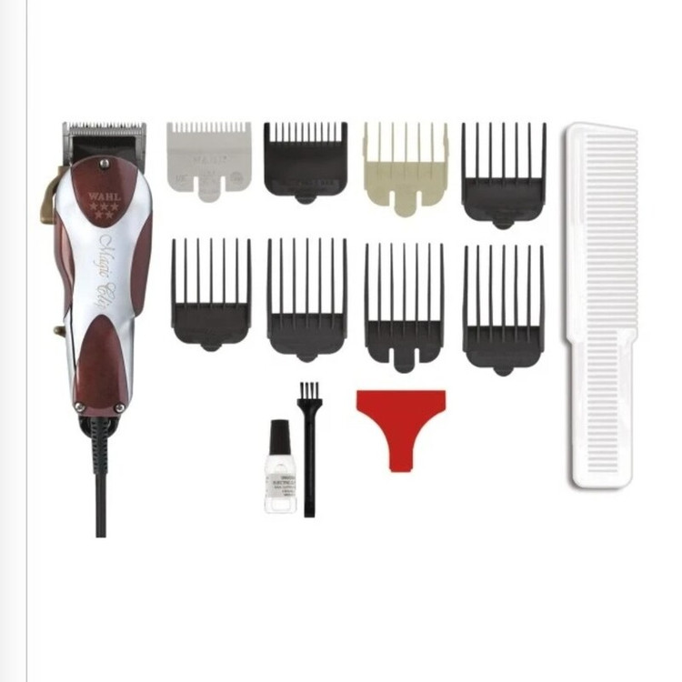 برای راحتی شما ماشین اصلاح وال مجیک کلیپ 5 ستاره همراه با تمام لوازم جانبی موردنیاز برای استفاده قرار گرفته است.شامل: کلیپر، 8 شانه، روغن برای تمیز کردن، قلممو، دستورالعملها و یک محافظ قرمز تیغه.