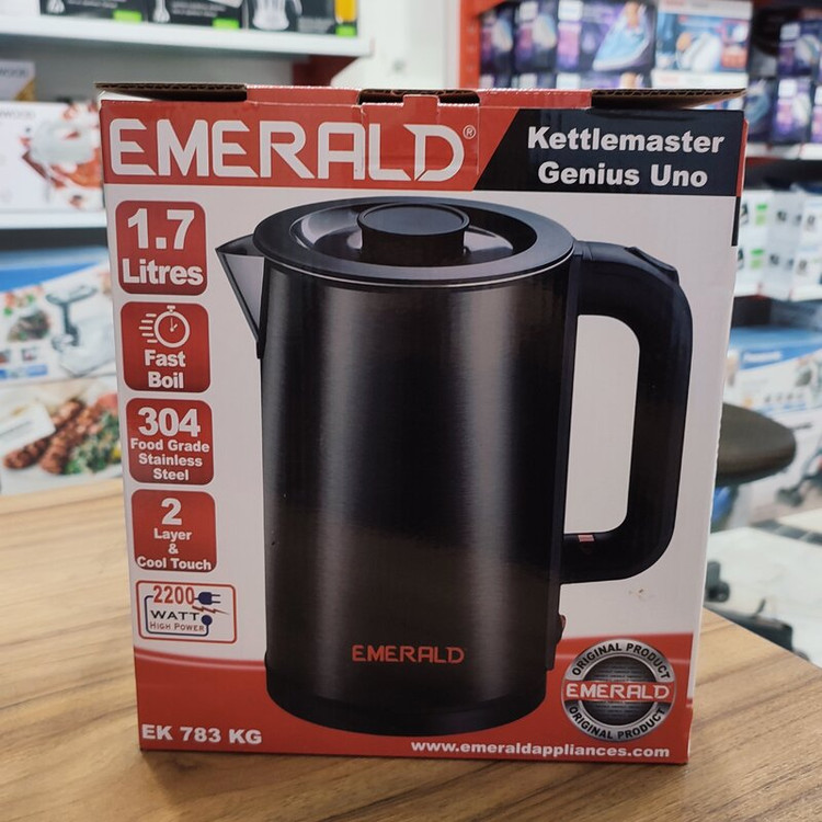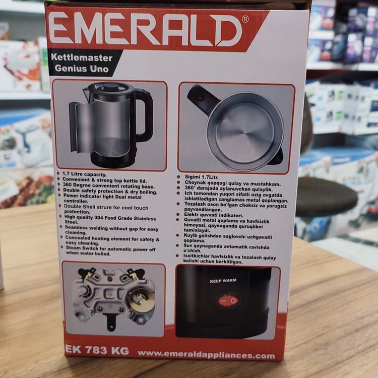 کتری برقی امرالد مدل ek783kg ، قدرت ۲۲۰۰ وات ، ظرفیت ۱.۷ لیتر ، جنس بدنه استیل ۳۰۴ ، ۲لایه ، خاموش شدن خودکار ، دکمه گرم نگهدارنده ، چرخش ۳۶۰ درجه ، چراغ نشانگر ، کیفیت واقعا خوب و عالی ، از جنس های با کیفیت ناشناخته میباشد